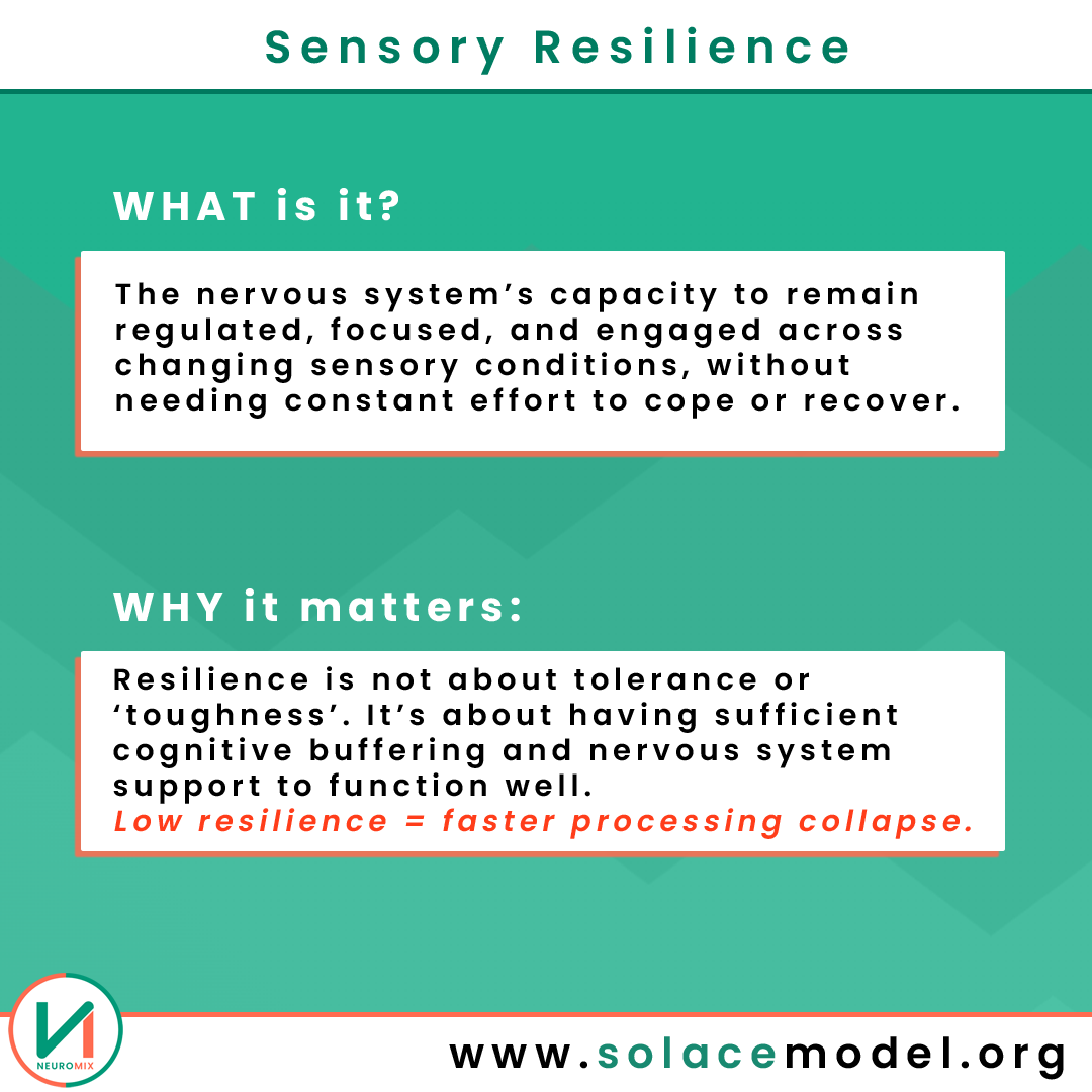 Sensory resilience is the nervous system’s capacity to remain regulated, focused, and engaged across changing sensory conditions, without requiring constant effort to cope or recover.
