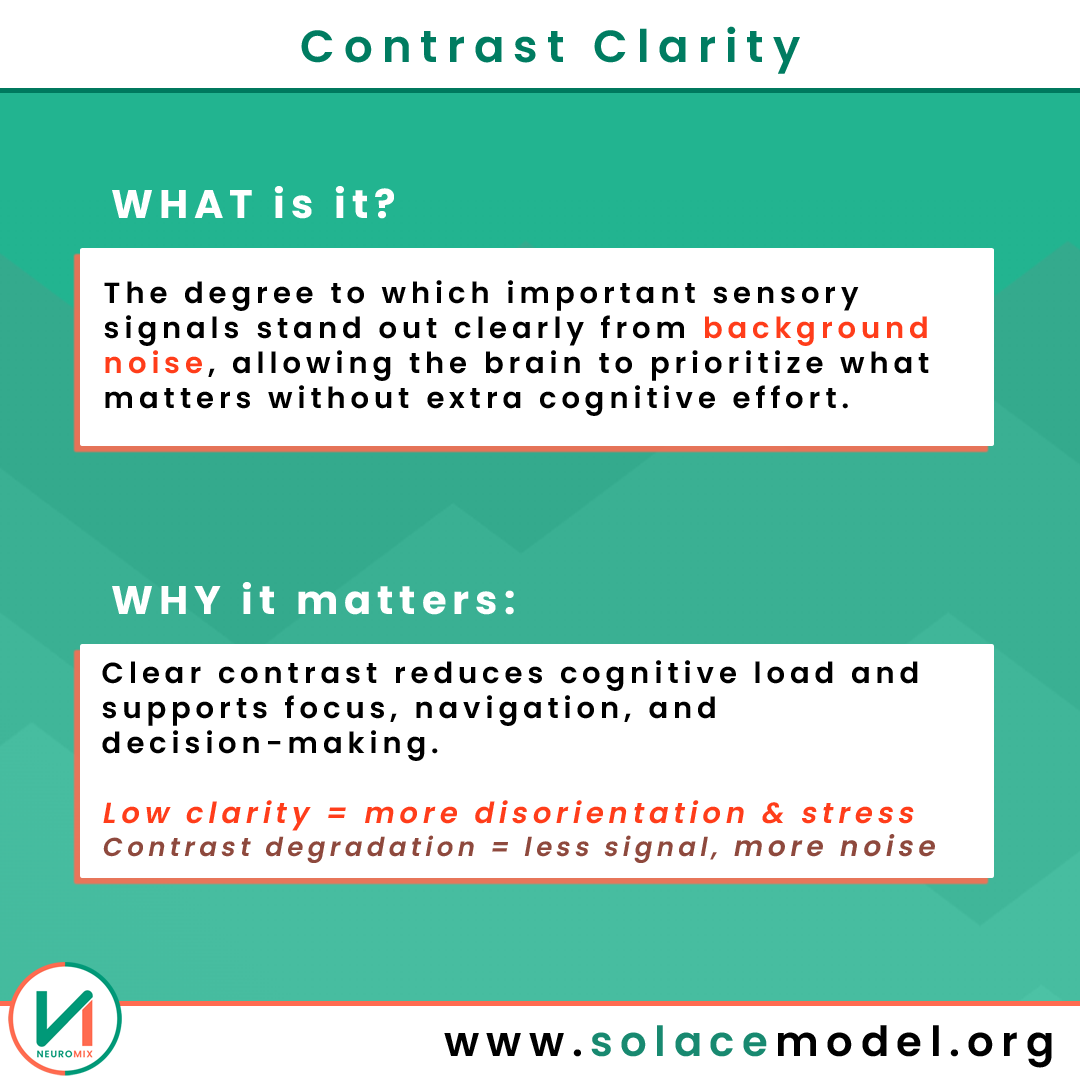 Contrast clarity describes how well crucial sensory signals stand out from background noise, allowing the brain to prioritize what matters without extra cognitive effort.